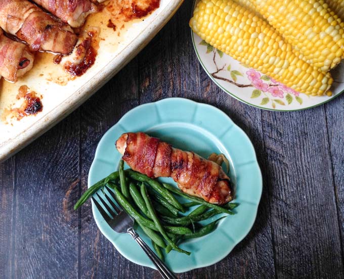 This is very similar to my bacon wrapped stuffed chicken dish. In that dish I stuffed a chicken breast with ham and swiss and then wrapped it in bacon. It too is fabulous but this is a bit lighter. The prosciutto is much leaner and the green beans make it seem fresher for some reason. You only need 4 ingredients and you can get them all at Aldi! (This is not a paid post for Aldi. I just love them!)