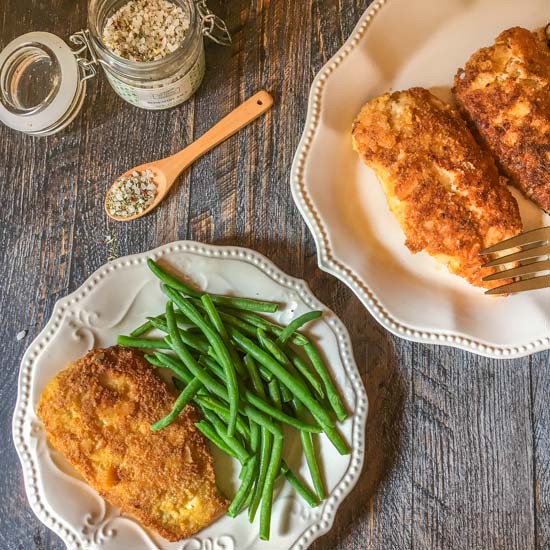 I shop at Aldi a lot. It’s so close to my house and I love how they have quality products at low prices. Recently I was there and found this package of prosciutto and it was so inexpensive! So I bought some along with some thin sliced chicken breasts and came up with this prosciutto wrapped chicken breasts dish. It was fantastic! I added the green beans in there so for some one like me who is eating low carb, I have my dinner nicely packaged in a little bundle. This recipe is super easy, and only 3.7g net carbs per serving.